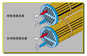 2、与对称式结构相比,非对称蒸发器不仅具有更高换热效率,而且其也具有更高回油效果。